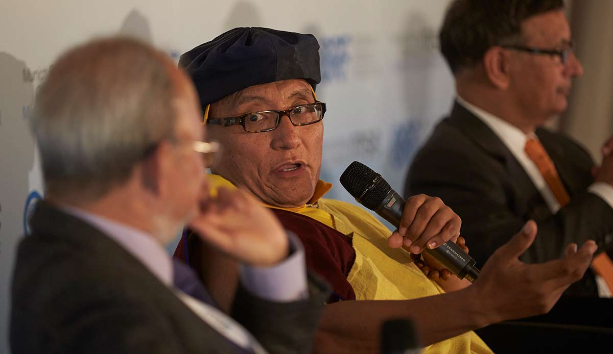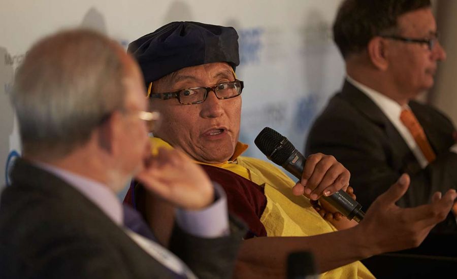 He spoke on a panel titled "Securing the Future of the Himalayas" about the future of the Himalayan region under the influence of climate change, the geopolitical situation, and the need to protect this region, home to Muslims, Buddhists, and Hindus alike, as the third pole of the Earth. 1.3 trillion people live in the Himalayas on the water from the glaciers. The Gyalwang Drukpa appealed to the Munich Security Conference to preserve ethnic and religious diversity. Peace can only exist on the basis of humanity, reconciliation, the protection of minority rights and a maximum of respect in a world full of differences.